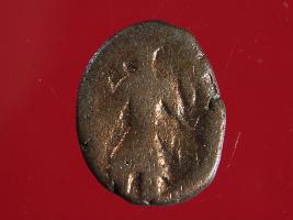 | Description / विवरण | It is a coin made of copper. The depression on obverse side depicts deity sitting on a bull. On reverse side there is standing human figurine. Shape is almost circular. Surface is rough. Appearance is copper brown. |