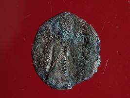 | Description / विवरण | It is a coin made of copper. The depression on obverse side depicts deity sitting on a bull. On reverse side there is standing human figurine. Shape is almost circular. Surface is rough. Appearance is copper brown. |