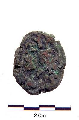| Description / विवरण | Obverse- Tree in railing, tourine and Swastika above, legend Mitas below. Reverse- Bull highly crusted. |