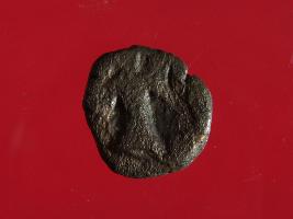 | Description / विवरण | This is a copper coin. The depression on obverse side depicts standing human figurine and reverse side image can not be identified. Shape is almost circular and surface is smooth. It is treated coin. Colour of object is copper brown. |