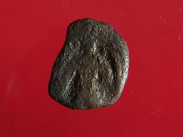 | Description / विवरण | This is a copper coin. The depression on obverse side depicts standing human figurine and reverse side image can not be identified. Shape is almost circular and surface is smooth. It is treated coin. Colour of object is copper brown. |