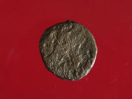 | Description / विवरण | This is a copper coin. The depression on obverse side a sitted human figurine and reverse side is fade. Shape is almost circular and surface is rough. Appearance is copper brown. It is treated coin. |