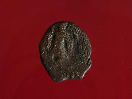 | Description / विवरण | This is a copper coin. The depression on obverse side depicts standing human figurine and reverse side image can not be identified. Shape is circular and surface is smooth. It is treated coin. Appearance is copper brown. |