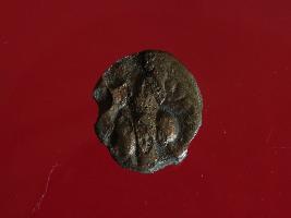 | Description / विवरण | This is a copper coin. The depression on obverse side depicts standing human figurine and on reverse side deity sittiing on bull. Shape is circular and surface is smooth. It is treated coin. Appearance is copper brown. |