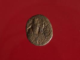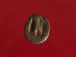 | Description / विवरण | This is a copper coin. The depression on obverse side depicts standing human figurine and reverse side deity sittiing on bull. Shape is circular and surface is smooth. It is treated coin. Appearance is copper brown. |