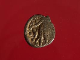 | Description / विवरण | This is a copper coin. The depression on obverse side depicts god Kartikay holding somethiing in his right hand and other hand placed on waist and reverse side vasudeva in standing position. Shape is circular and surface is smooth and shiny Appearance is copper brown. |