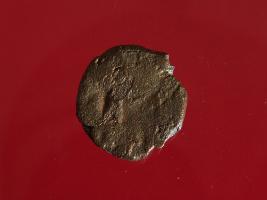 | Description / विवरण | This is a copper coin. The depression on obverse side depicts standing human figurine and on reverse side image can not be identified. Shape is circular and surface is smooth. It is treated coin. Appearance is copper brown. |