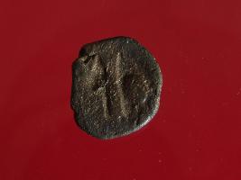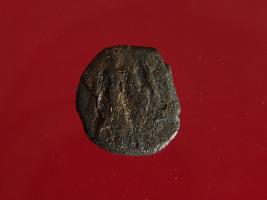 | Description / विवरण | This is a copper coin. The depression on obverse side depicts standing human figurine and on reverse side image can not be identified. Shape is circular and surface is smooth. It is treated coin. Appearance is copper brown. |