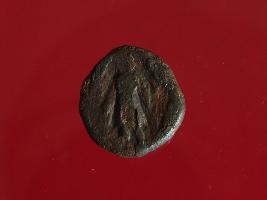 | Description / विवरण | This is a copper coin. The depression on obverse side depicts standing human figurine and on reverse side image can not be identified. Shape is circular and surface is smooth. It is treated coin. Appearance is copper brown. |