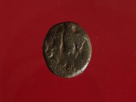 | Description / विवरण | This is a copper coin. The depression on obverse side depicts standing human figurine and on reverse side deity sitting on bull. Shape is circular and surface is smooth. It is treated coin. Appearance is copper brown. |