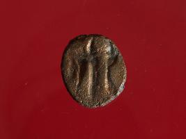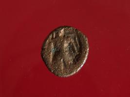 | Description / विवरण | This is a copper coin. The depression on obverse side depicts god Vasudeva in standing position and reverse side deity sittiing on bull. Shape is circular and surface is smooth. It is treated coin. Appearance is copper brown. |