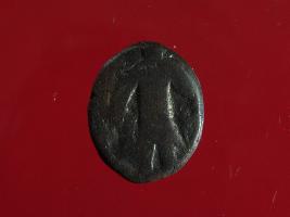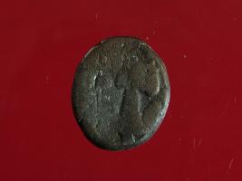 | Description / विवरण | It is a coin made of copper. The depression depicts on obverse side a deity in sitting position and on reverse side is a standing human figurine. Shape is almost circular. Surface is smooth with copper brown appearance. |