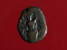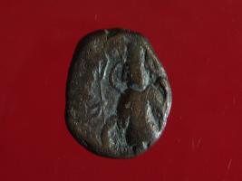 | Description / विवरण | It is a coin made of copper. The depression depicts on obverse side a deity in sitting position and on reverse side is a standing figurine of Shiva, holding trident in one hand. Shape is almost circular. Surface is smooth with copper brown appearance. |