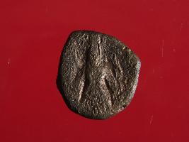| Description / विवरण | It is a coin made of copper. The depression on obverse side depicts a standing human figurine and reverse side cannot be identified. Shape is almost circular. Surface is smooth with copper brown appearance. |