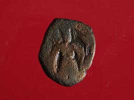 | Description / विवरण | It is a coin made of copper. The depression depicts on obverse side is a deity in sitting position and on reverse side is a standing human figurine may be of vasudeva. Shape is almost circular. Surface is smooth with copper brown appearance. |