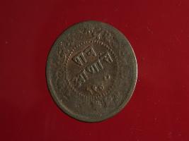 | Description / विवरण | It is a coin made of copper. The depression on obverse side depicts a seated bull wearing a beaded garland around the neck and inscription in hindi is written around it which shows the coin is belongs to Maharaja shivaji rao. On reverse side there is written inscription in a beaded circle and the whole depression carries leafy design around it. Shape is circular and surface is smooth with copper brown appearance. |