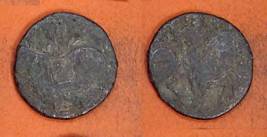 | Description / विवरण | Descrpn./Obv Recumbent bull facing left, wearing jhula (saddle cloth), with trisula (trident) symbol on rump. Above, legend in Sarada script Sri Samantadeva . Descrpn./Rev Rider with lance on caparisoned horse facing right. On left, Sarada letter bhi and on right, Sarada letter ta |