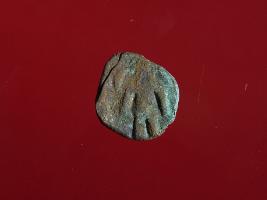 | Description / विवरण | This is a copper coin. The depression on obverse side depicts standing human figurine and on reverse side is fade. Shape is almost circular and surface is rough. Appearance is copper brown. |