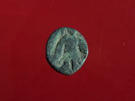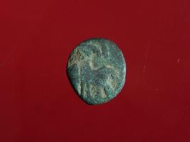| Description / विवरण | This is a copper coin. The depression on obverse side depicts standing human figuirne and on reverse side there is an animal figurine. Shape is almost circular and surface is rough. Appearance is greenish. |