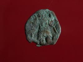 | Description / विवरण | This is a copper coin. The depression on obverse side depicts standing human figuirne may be of vasudeva and on reverse side fade. Shape is almost circular and surface is rough. Appearance is greenish. |