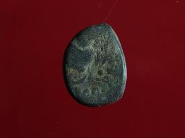 | Description / विवरण | This is a copper coin. The depression on obverse side depicts standing human figurine and reverse side image cannot be identified. Shape is almost circular and surface is rough. Appearance is greenish. |