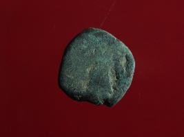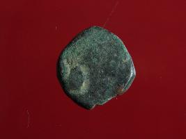 | Description / विवरण | This is a copper coin. The depression on obverse side depicts standing human figurine and on reverse side image cannot be identified. Shape is almost circular and surface is rough. Appearance is greenish. |