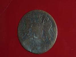 | Description / विवरण | This is a copper coin. The depression on obverse side depicts two standing lions holding flag in their hands and also a small lion figurine is seen between two flag and on reverse side is fade but some impression show that these coin belongs to East India Company. Shape is circular and surface is smooth. Colour of object is copper brown. |