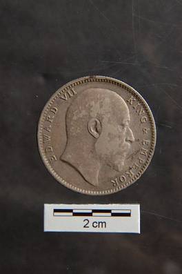 | Description / विवरण | Silver Rupee of Edward VII, King and Emperor. 1905 A.D. Obverse Head of Emperor to right English legend Edward VII left King and Emperor right . Reverse Crown at the top flowery foliage on either side in between the foliage- One Rupee India in English Ek Rupiya in Urdu 1905. |