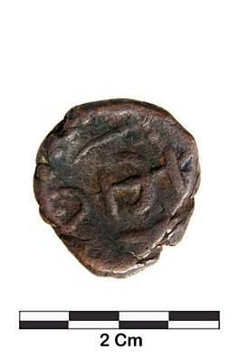 | Description / विवरण | Obverse- Legend Koan inside a circle of dots. Reverse- Crude human figure and traces of a circle of dots above his head. |