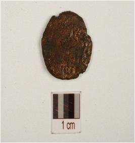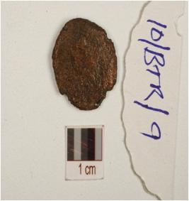 | Description / विवरण | A circular shape copper coin, having indeterminate motif on obverse, chemically treated and preserved. |