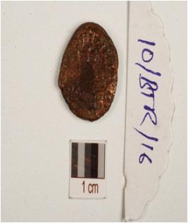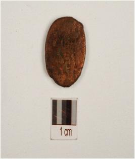 | Description / विवरण | A circular shape copper coin, having indeterminate motif on obverse, chemically treated and preserved. |