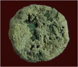 | Description / विवरण | Trench CZZ-3, LxB-D 6.40 mts x 5.10 mts - 1.30 mts B peg CZ42, Stratum Layer 3 It has a copper Coin. Features are not visible due to presence of patina, dust and dirt. Its surface is rough, dusty and uneven. Its colour demolished to dusty light brown. |