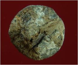 | Description / विवरण | Trench BZZ-1, LxB-D 5 mts x 1.80 mts - 0.75 mts B peg BX1, Stratum Layer 2 It is a copper Coin. Features are not visible due to presence of patina, dust and dirt.. Its surface is rough, uneven and dusty. Its colour demolished to copper brown. |