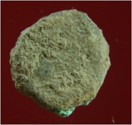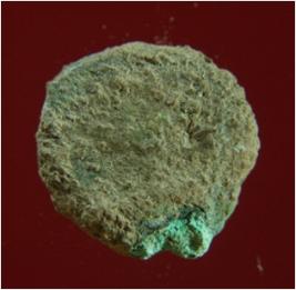 | Description / विवरण | Trench BY-1, LxB-D 4.30 mts x 6.30 mts - 0.25 mts B peg BX6, Stratum Layer 2 It is a copper Coin. Features are not visible due to presence of patina, dust and dirt. Its surface is rough, uneven and dusty. Its colour demolished to dusty copper brown. |