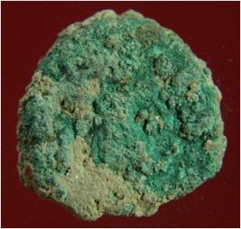 | Description / विवरण | Trench BZZ-2, LxB-D 3.10 mts x 3.50 mts - 0.45 mts B peg BX6, Stratum Layer 1 It is a copper Coin. Features are not visible due to presence of patina, dust and dirt. Its surface is rough, uneven and dusty. Its colour demolished to greenish copper brown. |
