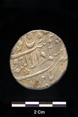 | Description / विवरण | Obverse Shah Alam Bahadur Badshah Gazi 1120. Reverse Jalus, manus, maimnat, Sana 2, darulsabar 1 wa, Zerb Buruhanpur 1 . |