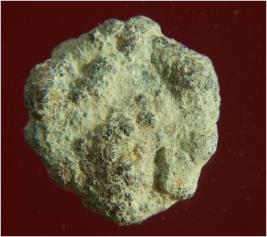 | Description / विवरण | Trench CZZ-6, LxB-D 2.60 mts x 4.50 mts - 0.76 mts B peg CZ42, Stratum Layer 1 It is a circular copper Coin. It has hard patina over it. The surface of object is uneven. The colour of object is light brown. Features are not visible. |