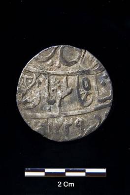 | Description / विवरण | Obverse Hamidin faze Shah Alam Badshah, fore part of a fish, 1229. Reverse Muhammadabad at the top, Jalus Sana 17 49, Manus, Zerb- Banaras. |
