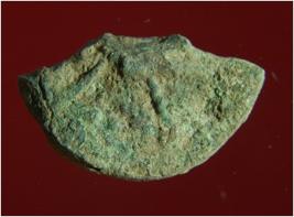 | Description / विवरण | Trench CZ-7 It is a broken copper coin. It has hard patina over it. It might be used as monetary purpose. Surface is rough and uneven. Its colour demolished to green copper black. |