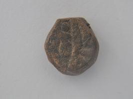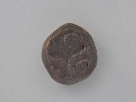 | Description / विवरण | Trench AX-2,LxB-D 7.10 mtrs x 4.35 mtrs - 0.05 mtr B peg AX2,Stratum Layer 1 It is a copper coin with soft patina over it. It has some pictographic signs over it. It might be used for trading purpose as a money. Surface is uneven and colour is copper brown. |