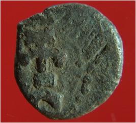 | Description / विवरण | Trench CZZ3-4, LxB-D 3.05 mts x 5.30 mts - 0.30 mts, B.peg CZZ1 8, Stratum- layer 2 It is a punch marked metal coin, made up of copper alloy. Black in colour and round disc like shape. It has two human figurine represented on one side and other design on other side. It was used as currency. |