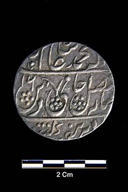 | Description / विवरण | Obverse Allah Muhammad Shah Gazi, Saya Fazl Hamidin 16. Zad bar haft kishwar. Reverse Zarb Maimnat, Manus, Jalus, Sana 43. |