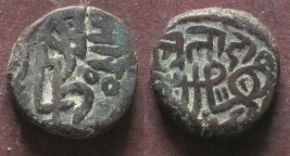 | Description / विवरण | Obverse- Bull to left; around suritan sri alavadin in Devnagari. Reverse- Horsemen to right; above sri hamira. |