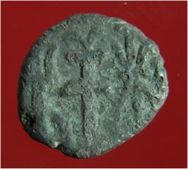 | Description / विवरण | Trench CZZ3-4, LxB-D 3.05 mts x 5.30 mts - 0.30 mts, B.peg CZZ1 8, Stratum-layer 2. It is a punch marked copper coin. It has human figurine over one side surrounded by dot designing over peripheral area other side there is different designing. Its surface is rough and uneven. Its colour is black. It might be used as currency. |