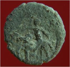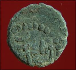 | Description / विवरण | It is punch marked coin, made up copper. The surface is uneven, colour is greyish black and might be used as currency. One side of object a human sitting on animal and on other side some dot like design. |