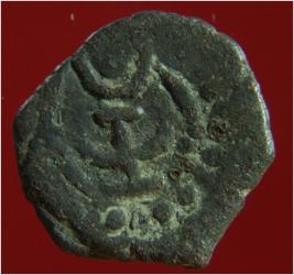 | Description / विवरण | It is punch marked coin, made up copper. The surface is uneven, colour is greyish black and might be used as currency. It has some pictographic design over it. |