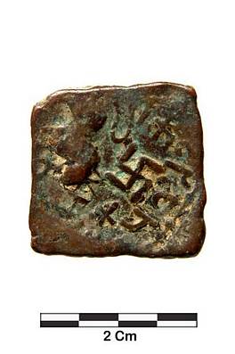 | Description / विवरण | Obverse- Lion to right and Swastikaa above it. Legend Ratrosirisataknis around the symbols. Reverse- Ujjain and triratna symbols inside a rectangle of dots. |