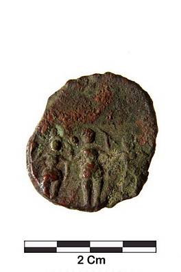 | Description / विवरण | Obverse- Three female figures standing side by side. The central figure holding one stick or arm on her hand other two adjoining figures also holding bow and arrow on their hand. Reverse- Obliterated. |
