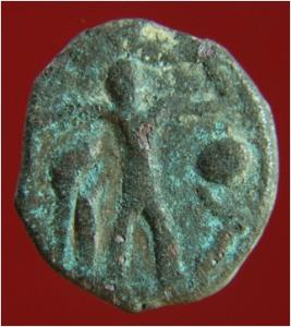 | Description / विवरण | It is punch marked coin, made up copper. Black in colour and disc like shape. It was used as currency. A human figurine is represented on one side and some symbol on other side. |