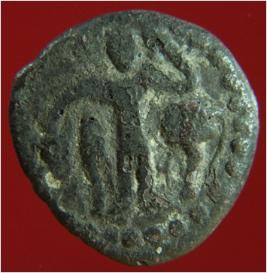 | Description / विवरण | It is punch marked coin, made up copper. Black in colour and disc like shape. It was used as currency. A human figurine is represented on one side and some symbol on other side. |